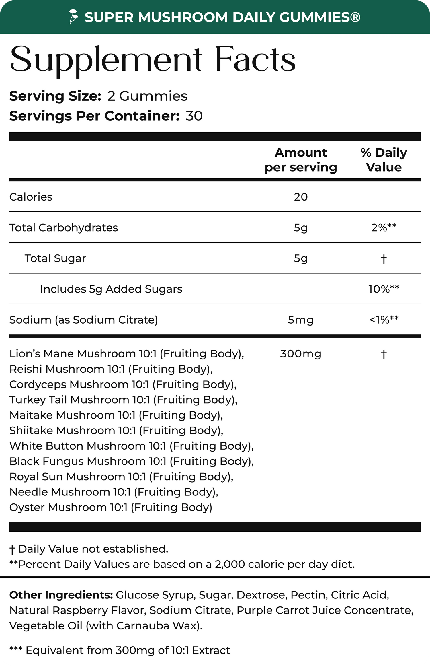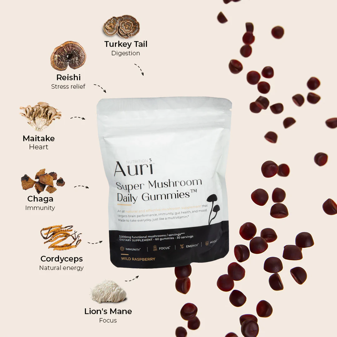 An all natural and effective mushroom supplement that targets brain performance, immunity, gut health, and mood. Made to take everyday, just like a multivitamin.